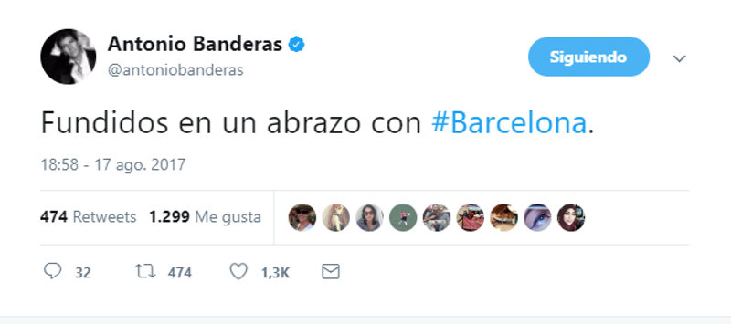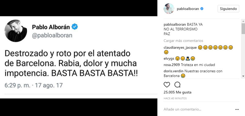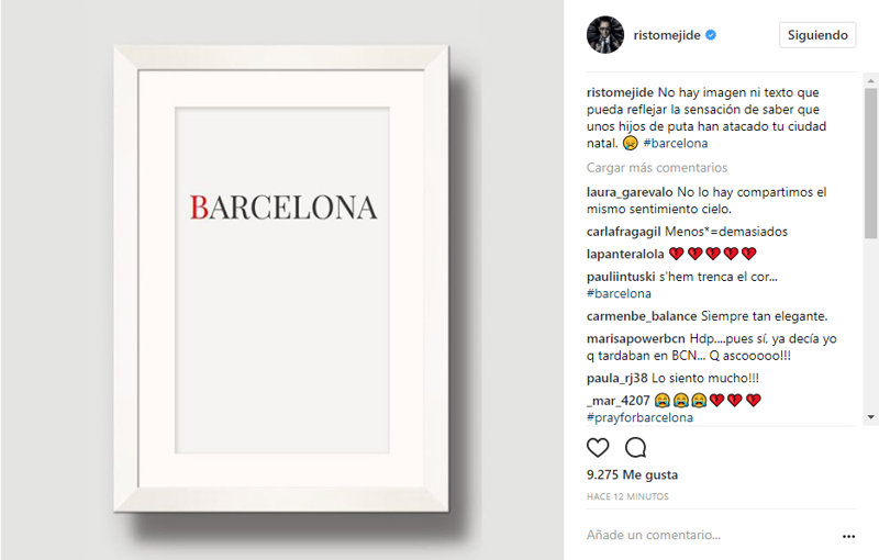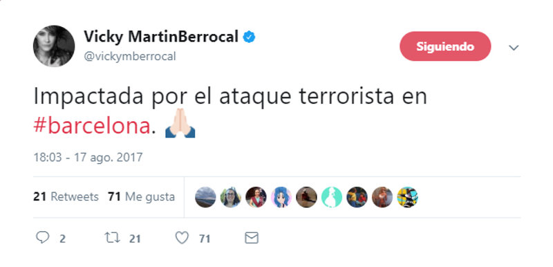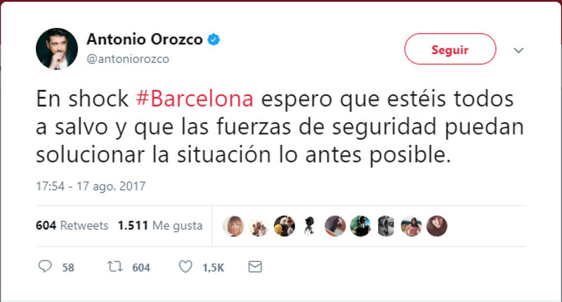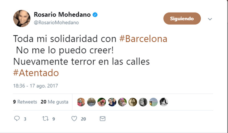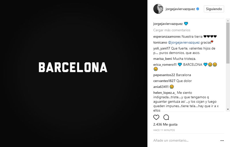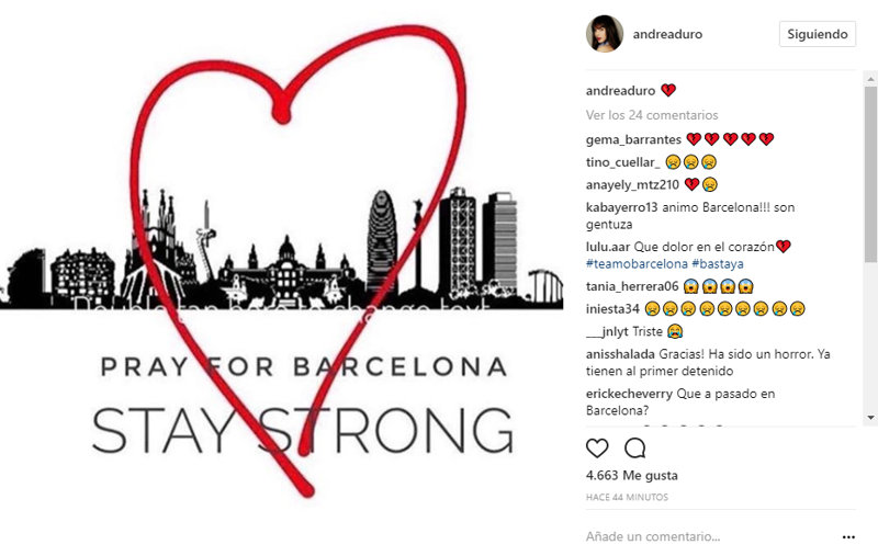 El terrible atentado en Barcelona nos ha conmocionado a todos. Shock, consternación, tristeza, indignación, rabia... sentimientos que vivimos hoy todos ante este terrible suceso. Las redes sociales se han llenado de imágenes y palabras en apoyo a todas las víctimas y a todos los ciudadanos de Barcelona en este fatídico día. Actores, artistas, periodistas, cantantes, han querido mostrar su indignación por este cruel acto y también enviar todo su cariño a las víctimas.