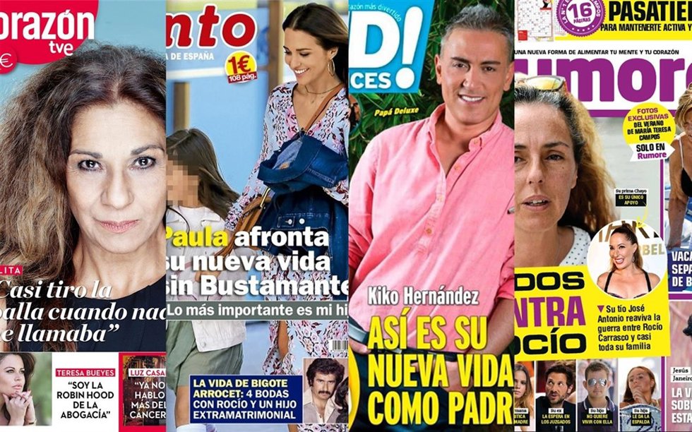 Ayer, el quiosco de revistas de los lunes nos brinda temas muy dispares. Continuamos con la guerra que Rocío Carrasco mantiene con gran parte de su familia, Kiko Hernández debuta como padrazo de sus dos hijas y Lolita Flores repasa uno de los momentos más difíciles de su vida, por el que estuvo a punto de tirar la toalla y dejarlo todo a perder. Te ofrecemos todas las claves ¡Las portadas de las cuatro revistas del quiosco rosa no dan puntada sin hilo!